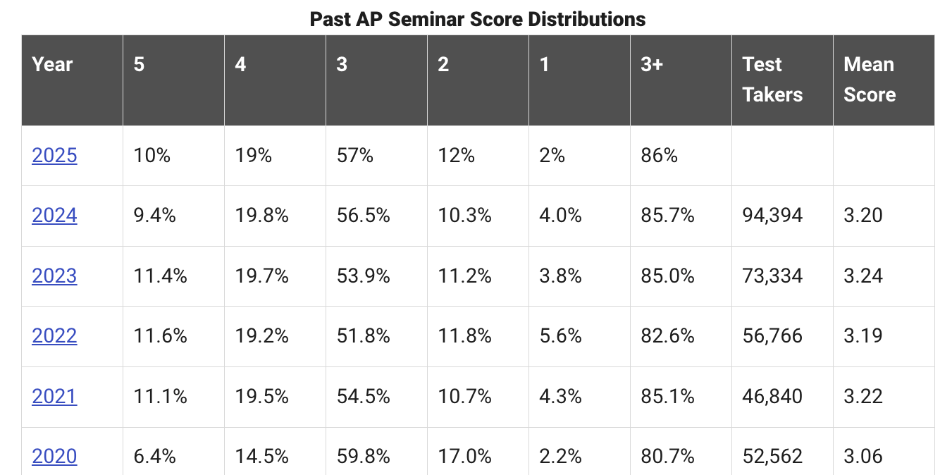 AP Seminar Score Distribution